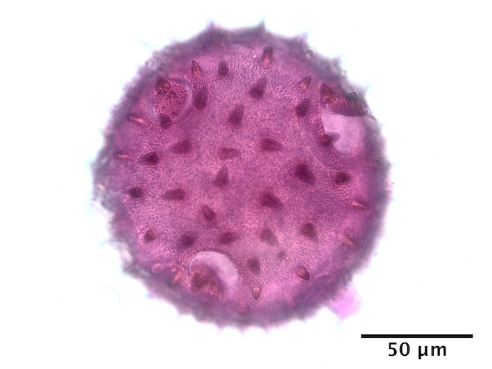 - hydrated pollen - fixed, ethanol (95 %) degreasing & glycerin gelatin mounting, basic fuschin, photographer: Gilot Philippe