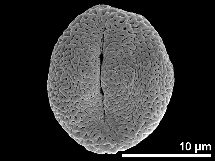 pollen unit: monad, dispersal unit and peculiarities: monad, size (pollen unit): small (10-25 µm), size of hydrated pollen (LM): 16-20 µm, shortest polar axis in equatorial view (LM): 16-20 µm, longest polar axis in equatorial view (LM): 16-20 µm, shortest diameter in equatorial or polar view (LM): 11-15 µm, longest diameter in equatorial or polar view (LM): 11-15 µm, pollen class: -, polarity: isopolar, P/E-ratio: prolate, shape: spheroidal, outline in polar view: lobate, dominant orientation (LM): equatorial, P/E-ratio (dry pollen): prolate, shape (dry pollen): spheroidal, outline in polar view (dry pollen): lobate, infoldings (dry pollen): aperture(s) sunken, aperture number: 3, aperture type: colporus, aperture condition: colporate, aperture peculiarities: -