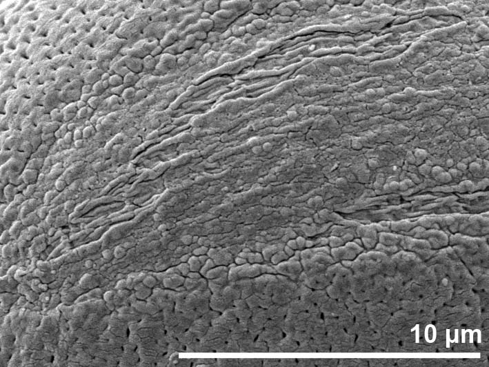 - oblique distal polar view - dry, rehydrated (water) & critical point dried & sputter coated with gold, photographer: Halbritter, H.